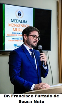 Em sua fala de encerramento, o homenageado, Dr. Francisco Furtado, comovido, discorreu sobre sua trajetória como profissional da medicina, sua dedicação e seu compromisso em contribuir com a sua cidade e participar dos momentos gratificantes da vida, graças ao apoio de seus pais e de sua família, que contribuíram e continuam contribuindo para sua formação como cidadão e profissional da medicina.