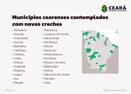 As creches anunciadas para o Ceará integram a nova etapa do PAC Seleções, voltada à área da educação, lançada em fevereiro deste ano. A previsão é de R$ 2,3 bilhões em investimentos em todo o País. Desse total, R$ 1,83 bilhão será destinado à construção de 505 creches, sendo o Ceará contemplado com parte desses recursos.