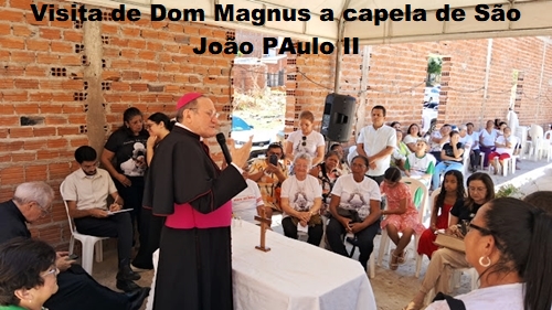 Na manhã de quarta-feira, 29, às 8h, Dom Magnus Henrique, acompanhado do Padre Joaquim Ivo e de integrantes da comissão do II Congresso Eucarístico Paroquial, visitou a Capela de Mães Rainha, localizada no bairro do Rosário. Às 9h, também fez uma visita à Capela de São João Paulo II, que ainda está em fase de construção na Vila Santo Antônio.
