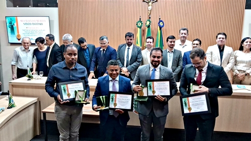 Na noite desta sexta-feira, 14, ocorreu uma sessão solene na Câmara Municipal para a entrega da Medalha do Mérito Santo Antônio. O evento teve como objetivo reconhecer os barbalhenses Caio Garcia Correia Sá Cavalcante, Dorivan Amaro dos Santos, João Paulo Monteiro Landim Cruz e Pértrousson Fidelis Lourenço.