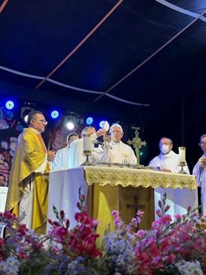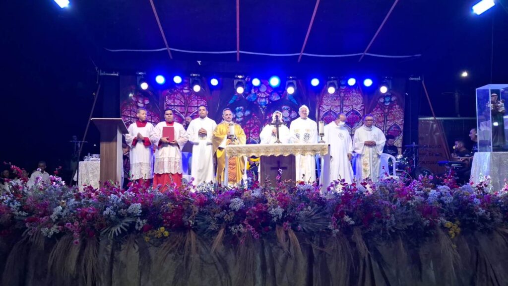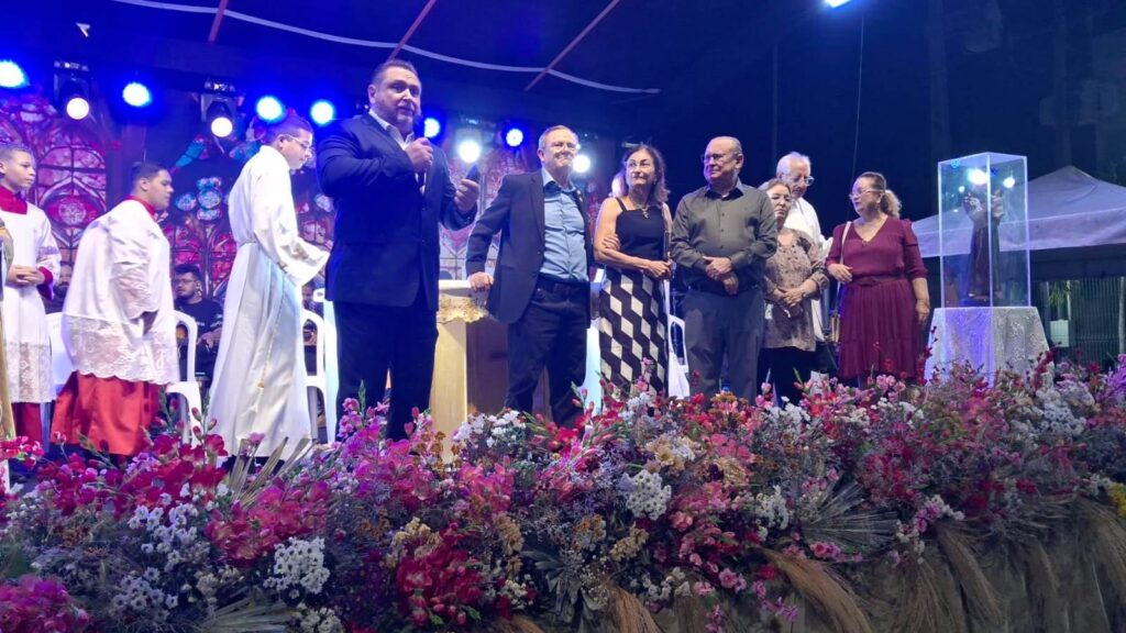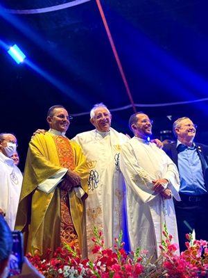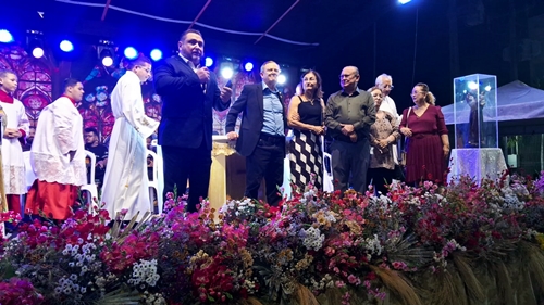 O padre Joaquim Ivo, que celebra seu aniversário e é pároco de Barbalha, atuou como concelebrante na Santa Missa. Ele não deixou de comentar sobre seus 27 anos de ministério e, visivelmente emocionado, compartilhou: “Esses 27 anos como sacerdote simbolizam um encontro íntimo com Cristo e um amor intenso pela causa do Reino de Deus.” TAPE..