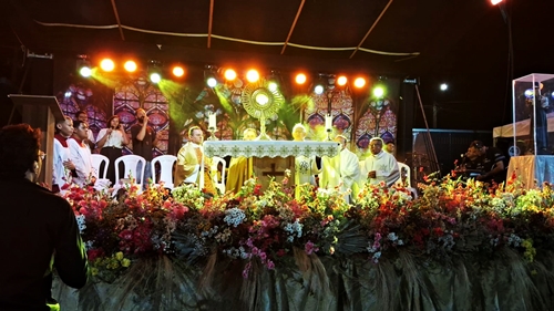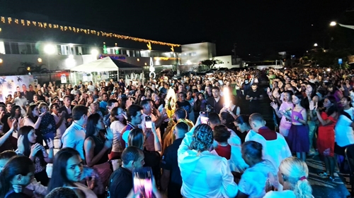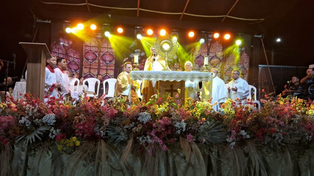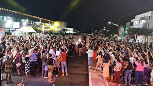Durante a celebração da missa, aproximadamente duas mil pessoas estavam acomodadas em frente ao Hospital Santo Antônio, exaltando o nome de Deus por terem a oportunidade de vivenciar mais um ano de festividades repletas de fé, preces e sentimentos intensos, enquanto o Santíssimo Sacramento atravessava a multidão.
