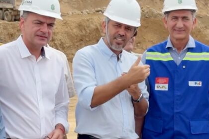 O ministro da Integração e do Desenvolvimento Regional, Waldez Goes, o governador Elmano de Freitas e o secretário de Recursos Hídricos do Ceará, Fernando Santana estiveram nesta terça-feira 27, em Ba...