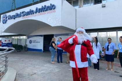 Em traje de Papai Noel, um dos diretores do Complexo Hospitalar Santo Antônio e do Coração do Cariri mantidos pela Fundação Otília Correia Saraiva, fez uma visita aos pacientes hospitalizados e distri...